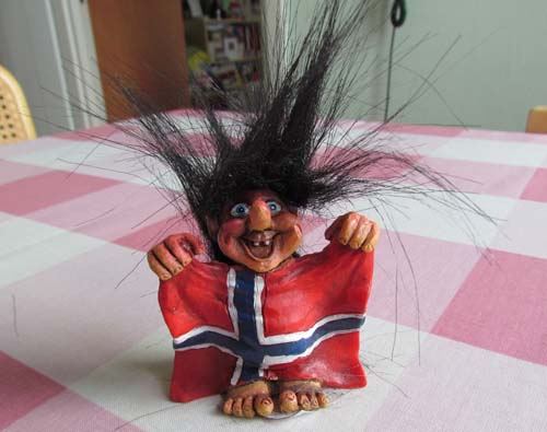 | 2011-08-21. Home again. I bought this little troll in Norway with the Norwegian flag. He make me smile because he looks so happy. :-) | |